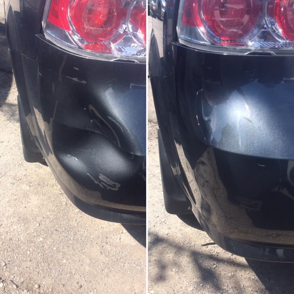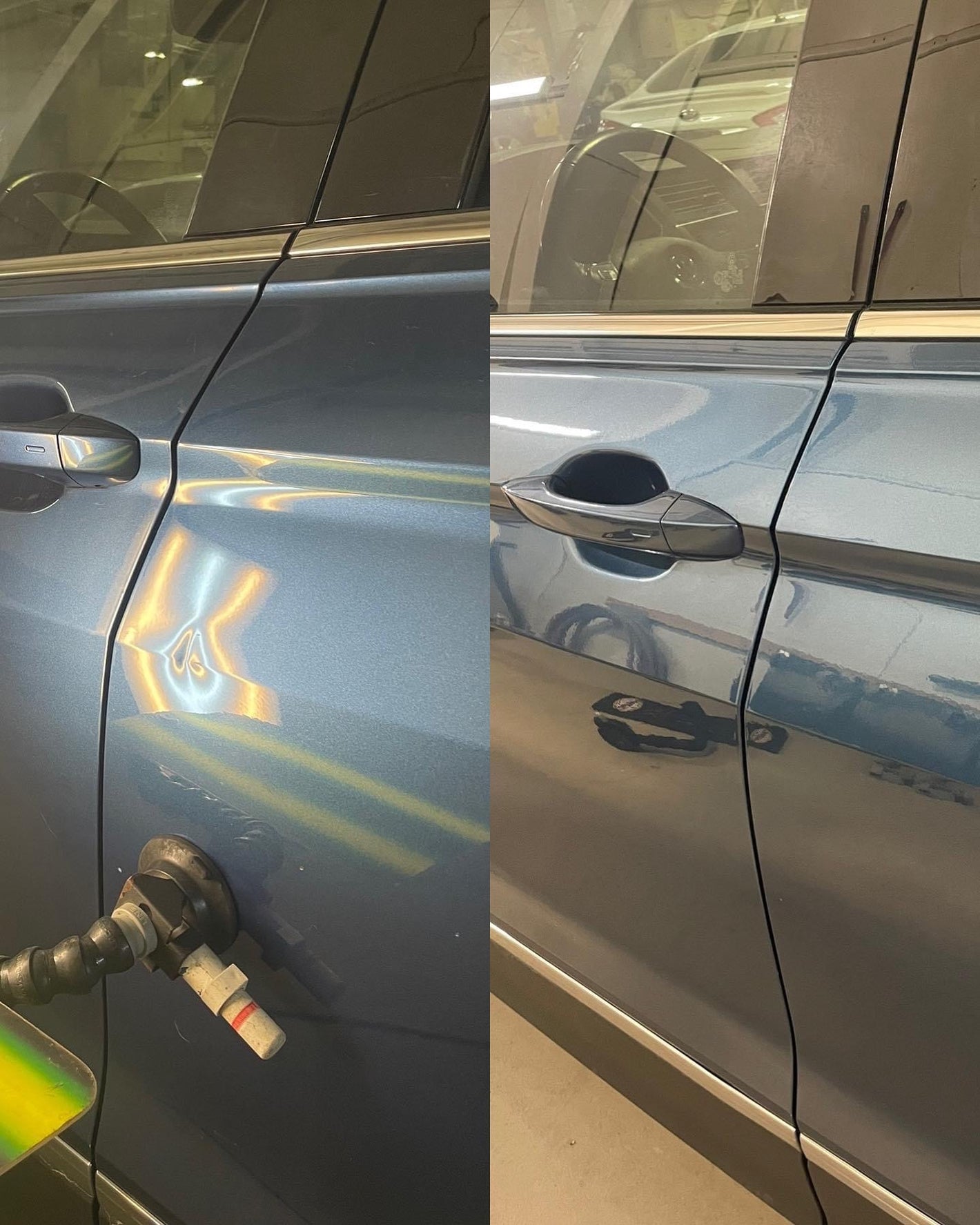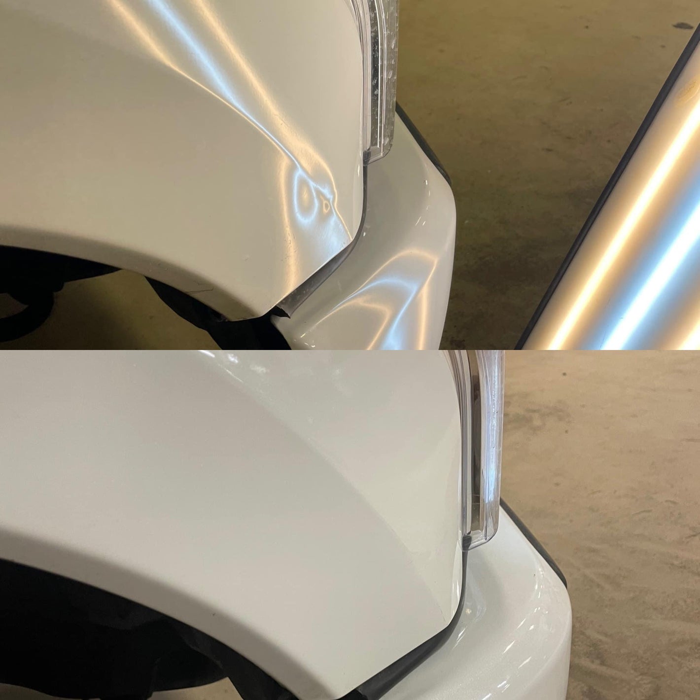 Our technician uses a variety of tools and techniques to work the metal from the inside of the panel to move the metal back in place. No bondo, paint, or fillers are ever used to repair vehicles